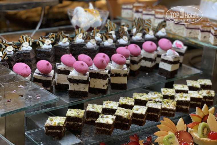 Отдыхали семьей из 4-х человек, 2 взрослых и 2 ребёнка ( 1и 5 лет). Отель высшего уровня во всем, питание на 5+++, ежедневно разнообразное и вкусное меню, огромный выбор морепродуктов, мяса( говядина, баранина, индейка, рыба), много вкусных сыров( камамбер, сыр с голубой плесенью, Фету), по утрам свежевыжатый Фреш, соки с мякотью, что в принципе редкость для Египта. Море овощей, фруктов (арбуз, дыня, манго, гуава, апельсины, яблоки, виноград, лайм, сливы), различных десертов. И кофе, отличный кофе с натуральных зёрен с кофемашин. Любители кофе меня поймут!