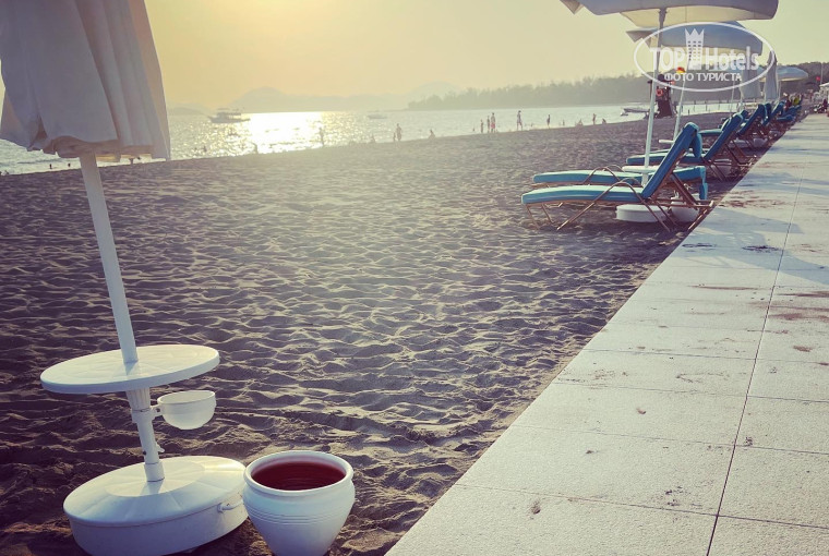 Нам понравилось все! Мы даже не нашли недостатка, что погулять негде: сначала с картой исследовали всю территорию отеля, прошли по периметру, вечером неспешно под ручку с коктейлем в руке прогуливались там (нашли все: фитнес центр, крытый бассейн, ночной клуб, спорт бар, игровой клуб с аэрохокеем и автоматами, спа, бары, кондитерская и др.). Потом в течение отпуска даже не везде успевали бывать. Особенно жаль, что фитнес центр прошёл мимо нас (он классный), но зато ночной клуб и бары мы посещали регулярно))) Ещё обожали встречать закат на море, вечером можно сидеть на пляже, если хочется уединения и тишины. Также ходили вдоль берега в правую сторону (стоя лицом к морю), там кедровая роща, мостик, пантон в море, симпатично))