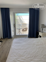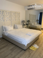 Про Отель: заселение ровно после 14.00. Как уже сказала он не новый, но выглядит хорошо, номера стандарт отличные, уютные, сделаны в греческом стиле-белое с синим, огромная балконная дверь, большая кровать, фото номера прилагаются. Мебель конечно не новая, но всё что нужно есть. Вот что абсолютно разочаровало это ванная комната-там плесень. Это единственное что мне не понравилось в номере. Так же в номере есть холодильник (фанта, кола, спрайт, вода при заселении все было, больше не пополняли), чайник, чай, кофе, сливки, сахар, сейф (им мы даже не пользовались).