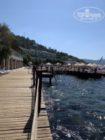 Море теплое, нежно бирюзовое, возле пирса мы кормили рыбок хлебом, их много приплывает и они чуть ли не дерутся за хлеб-это было забавно. В море можно плавать с пирса или с пляжа где мелкая галька. Часто бывают волны. У отеля на пирсе есть водные мотоциклы, банан, и прочие такого рода развлечения, но стоят не дешево, от 20 евро с человека. Так же ездили от отеля на яхте в 3 бухты за 42 доллара с человека- не понравилось, просто останавливались в бухтах на час чтобы поплавать, к берегу не подплывали. С тем же успехом можно и у отеля поплавать.