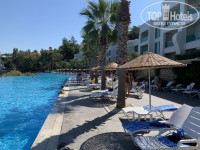 В турагенстве меня убеждали что Бодрум это прям другая Турция- ну нет, просто Турция, ничего прям необычного)) Но мне понравилось- красиво, зелено, море теплое (в сентябре), жары дикой не было 30 градусов-комфортно, не сгорели ни разу. Отель сам не новый, но месторасположение прекрасное! От аэропорта ехать 20-25 минут- это просто круто! До самого города Бодрум так же ехать минут 15-20 на маршрутке. Остановку не ищите, её нет у отеля, просто стойте у самого отеля наверху где пропускная, они сами останавливаются (автобус №2, там на табличке перечислены отели через которые он едет) и на обратном пути просто сообщаете что вы в отель Кайраба Блю и вас туда же и привезут. Или такси попросите вызвать на ресепшене. Стоит такси 10 долларов в одну сторону. Но такси долго ждать, на маршрутке уедете быстрее. В общем не поленитесь поезжайте в сам Бодрум там весело, шумно, есть где погулять, рынок/магазины, дискотеки/бары и прочее...