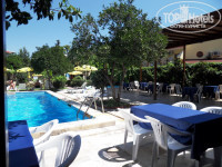 Территория отеля маленькая. Сам корпус и дворик с бассейном, ресторанчик. столики тут же около бассейна, при въезде в отель платный бар, больше ничего нет. У забора во дворе живет симпатичный козлик.