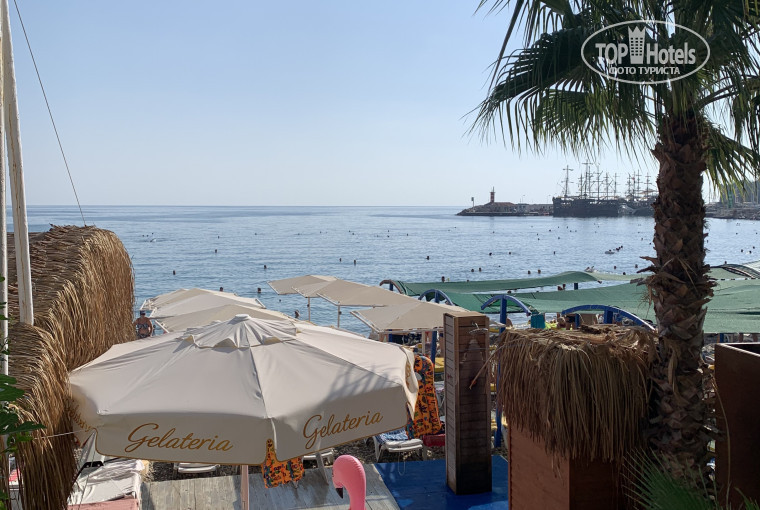 Поделюсь впечатлениями об отеле Olimpos Beach Hotel в целом. Отдыхали с мамой в сентябре этого года. Приехали в отель рано утром, администратор вежливый парень нашёл нам номер и сразу заселил. Номер чистый, все работало. Интересно само расположение отеля, вернее их два, но это одна сеть. Между ними прогулочная зона с лавочками. Проход на пляж идёт через бар с террасой, где можно посидеть, полюбоваться на море и послушать музыку. Пляж рядом с отелем, через дорогу. Небольшой, но места находили (рядом с лежаками,если все занято стелили матрасы и нас это устраивало). Нам важно было море и близкое расположение. Питание отличное: рыба, мясо, овощи разные, фрукты, сладости. Несколько раз на ужин жарили на гриле шашлык и бургеры. Отдельное спасибо управляющему,Osman очень вежливый и внимательный человек. Всегда следил, чтобы была в достатке еда на раздаче, находил всем место на завтрак, обед, ужин. Интересовался каждый день все ли хорошо и все ли устраивает. В любой ситуации можно к нему обратится. Если не хотите переплачивать и не ищете роскошь, то советую этот отель. Кому интересно, экскурсии все брали напротив отеля в турагентстве Ginza Travel у Ромы. Качество и цена огонь 🔥 бонусом бесплатный Wi fi☺️