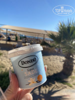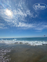 На пляже есть кафе, витамин бар, душ, туалеты, прокат всяких водных развлечений.