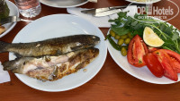 Еда - курица и индейка,ни баранины,ни говядины мы не видели.Единственное,что меня порадовало это жареная рыба каждый день.Из фруктов:арбузы,дыни,яблоки были каждый день.Хорошие турецкие сладости (пахлава и все что из слоеного теста с мёдом орехами) дают только в турецкую ночь,в остальные дни сладости из манки и бисквитные пирожные.