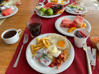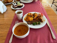 Соки порошковые. Картофельное пюре порошковое или картофель фри на гарнир. Все холодное. Еду накладывали сами, никакого режима карантина тут нет, в масках никто не ходит. Антисептиков в ресторане и масок в отеле нет.