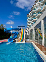 Отдых здесь похож на выживание. Неделя пребывания была похожа на отдых в четверочке Египта. Тут нет 5*, тут нет настоящей Турции. И самый главный обман - ЭТО НЕ ПЕРВАЯ ЛИНИЯ!!! Нужно выходить с территории отеля и идти через пустырь в обход впередистоящего отеля. Проход через туннель, и через 7 минут мы на пляже.