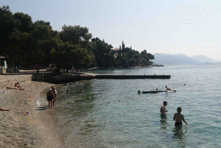 В данном отеле отдыхали вдвоем с мужем в августе. Выбирала сама, ориентировалась на близость пляжа и систему все включено. Впечатление от самого отеля остались приятные. Пляж действительно близко и не нужно было вскакивать в 7 утра, чтобы занять шезлонг. Море шикарное и чистый воздух. Отдельно отмечу довольно неплохое питание, особенно вкусные круассаны с утра, которые выпекают в отеле. Персонал в отеле был учтив и доброжелателен, но никто в отеле не говорит по-русски. Туристы там в основном были люди из Австрии, Германии, Польши и Хорватии. Для тех кто хочет съездить на экскурсии на русском языке этот отель не подойдет! Ни один русскоговорящий туроператор или гид не доезжает до этого места! По живописной дорожке можно прогуляться до близлежащего городка Оребич. До Дубровника более 2 часов на машине.