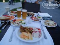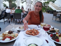 Сразу же пошли на море. Море комфортное, в первый же заплыв был ужален кем-то в левое плечо (в первый и последний раз за все поездки в любые страны мира), ну бывает. Освежившись, вернулись, разложили вещи и отправились на ужин. Действует дресс-код, в шортах-майках - нельзя, но почему-то какие-то невоспитанные гарные хлопчики всё ж встречались.