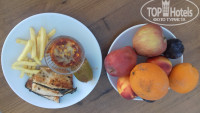 ПИТАНИЕ. Что понравилось - разнообразие мясных блюд – говядина, баранина, индейка, курица, рыба. В анталийских четвёрках мясо не дают, только курицу и соевые котлетки. А здесь именно МЯСО. И впервые такое вижу в турецкой четвёрке, что блюда по-хорошему не простецкие. То есть не просто какой-нибудь белок и пресные овощи с гарниром, а реально всё вкусно, более изысканно приготовлено с добавлением каких-нибудь фишечек в виде соусов или приправ. Выбор блюд поменьше, но КАЧЕСТВО лучше. Большой выбор фруктов. Как обычно, свежие овощи-зелень. Всегда стоят бутылки с водой, можно брать с собой. И отдельно хочется отметить, насколько классная, просторная, открытая ресторанная веранда, где ужинаешь с великолепным видом на горы! А пить утренний кофеёк под открытым небом и настраиваться на предстоящий день, наблюдая, как над твоей головой, словно большие птицы, кружат разноцветные парапланеры- отдельное удовольствие :)