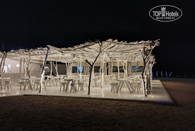 Самый приятный пляж на косе, в отдалении, заходишь в воду с бухты где на дне чистый песок и можно плыть в открытое море. Работает анимация круглосуточно, по всей территории отеля. Утром растяжка, позже аквааэробика, днём тоже вечеринки, людей развлекают постоянно. Очень много туалетов на территории, везде чисто и есть туалетная бумага, мы это оценили.