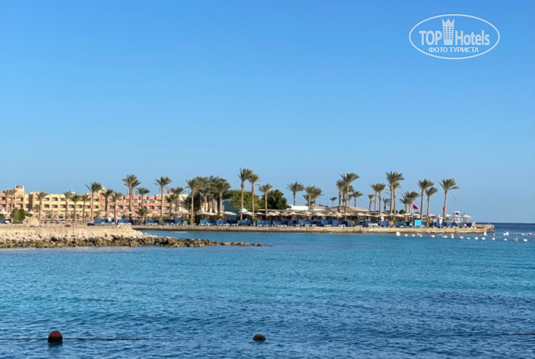 У отеля общая территория с отелями Arabia Azur и Arabella Azur. Территория зеленая и очень красивая. Есть лагуна с песочком, а есть вход в открытое море с лестниц, там же и коралловый риф с рыбками. На пляже немноголюдно, но это январь.