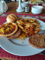 Обед и ужин примерно одинаково курица жареная или жёсткий говяжий гуляш, от которого потом болят и зубы и челюсть. Специально недоваривают, чтоб люди меньше брали, хотя там всегда стоит повар и накладывает только по 2 кусочка. Гарнир это рис или макароны, из салатов капуста белая, капуста красная , бобовые в какой то темной жидкости и иногда помидоры недозрелые. И так же чай или кофе в стаканчиках. Никакого вина или пива нет все платно и даже если принести из бара это очень далеко. Из фруктов пару раз дали дыню, а так постоянно давали завязадшие апельсины, которые никто не брал.И самое противное когда сидишь ешь а вокруг вонь от кошачьей мочи.