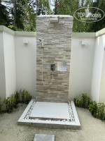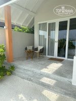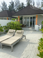 Наш выбор пал на Grand beach villa (815), который находился на основном острове, с выходом в лагуну. Номера этой категории располагаются с видом на рассвет. Новый, свежий ремонт. Большая ванная комната с двумя душевыми (одна из которых под открытым небом) и ванной. Каждое утро нас встречали причёсанный белоснежный песочек, чистейшая лазурная вода индийского океана, отсутствие волн, безопасный пологий вход в воду. У номеров этой категории нет вида на открытый океан, это надо учитывать, если для кого-то это является минусом, для семей же с детьми, думаю, это плюс, так как здесь всегда спокойный океан и нет водорослей. За каждым номером закреплено по два шезлонга. Шезлонг деревянный, с выдвижным столиком, матрас с подголовником. Пляжные полотенца в номере, меняются вместе с банными. Если захотите понежиться под солнышком на шезлонгах у бассейнов или дайвцентра, то полотенца с собой нести нет необходимости, везде можно взять другие. Зонт от солнца отсутствует, но если хочется скрыться от достаточно сильных солнечных лучей, это можно сделать тут же, на террасе, где есть кресла и топчан. Здесь же расположен омыватель для ног от песка.