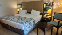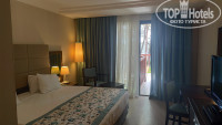 2. НОМЕР. Номер 1214 нам достался хороший на 2 этаже в гл.здании, по центру с видом на Семейные бунгало и новый корпус Residence, так же был боковой вид на море. В номер есть все необходимое мини-бар (пополняли ежедневно по две 250мл банки пива Эфес, Колы, Фанты, 200мг пак. сока, газ.воды и воды без газа), эл.чайник, чашки, чай, кофе, сахар. Сейф, ЖК телевизор (5 российских каналов), кондиционер, 1 большая двуспальная кровать (с 1 одеялом, мы позвонили в Guest Relations, мин через 15 принесли 2е ), шкаф, 2 тумбочки, стол, 2 кресла. Тапочки 2 пары, халаты по запросу. На балконе пластиковый стол, 2 стула и сушилка для белья. В ванной комнате из гигиенических средств шампунь, гель для душа, лосьон для тела, кондиционер для волос, мыло, туалетная бумага, косметический набор (ватные палочки, ватные диски, шапочка для душа), есть фен, душевая кабина, раковина и унитаз-биде. Единственный минус – это отсутствие маленького круглого зеркала для макияжа. Убирали в номере хорошо, постельное белье и полотенца меняли ежедневно. Мебель в номере не новая, но в хорошем состоянии. Судя по старым фото из отзывов, мягкую мебель перетянули, заменили изголовья у кроватей и поменяли текстиль. В ванной комнате дизайн плитки слегка устарел, но она в очень хорошем состоянии. Вся техника и сан.техника работала исправно и проблем никаких не было.