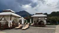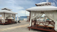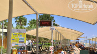 7. ПЛЯЖ И МОРЕ. Пляж разделен на 2 зоны, справа для взрослых и курящих, слева для семей с детьми. Пляж песочек, заход удобный без крупных камней. Море класс тепленькое (градусов 19-22 и это в начале мая), чистое, пляж очень широкий лежаков достаточно, друг у друга на головах не лежишь. Так же позагорать и поплавать можно и с пирса, есть 4 спуска. Еще на пирсе есть душ. Из бесплатных развлечений на пляже: можно поиграть волейбол и в бочча, за отдельную плату из развлечений парашюты, серфинг, катамараны, парусники, бананы, ватрушки и т.п, всех цен не знаю, парашют-120 $ (за двоих). Для детей на пляже, под навесом, есть детская площадка с горками и качелями.