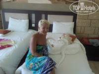 Были 10 дней с дочкой, остались в полном восторге и от отеля, и от обслуживания. Очень милый и внимательный персонал, ежедневная уборка в номере, на День Рождения поставили в холодильник торт с поздравительной надписью. Пляж далековато, но прогуляться по улице с красивыми пальмами, полюбоваться сувенирными магазинчиками - нам было в кайф. Море ГОРЯЧЕЕ! Да, мелкое, но моя дочь не умеет плавать, и я была очень довольна, что не надо непрерывно отслеживать, где она и что с ней - я знала, что она в полной безопасности. То, что в море освежиться было нереально, по причине высокой температуры воды (мне казалось, градусов 60, не меньше, я чай холоднее пью), зато мы с удовольствием плавали в бассейнах, которых на территории 4 штуки - и помельче, и поглубже, и с баром, и детский. Одним словом -- супер! Обязательно еще поедем.