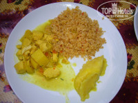 В ресторане на раздатке нет холодильников, заготовка салатов и овощей ведётся с вечера, поэтому еда имеет характерный кисловатый привкус.Ужин раздаёт повар с таким выражением лица, что пропадает всё желание пробовать эти деликатесы: типа перловки+макароны+3 фрикадельки. Кто составляет это меню и зачем готовят эту гадость не понятно. Большинство гостей после второго ужина питается на улице.