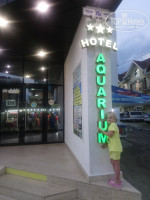 Начну по-порядку:Изначально покупали тур в другой отель, но по приезду (по каким-то там причинам) нам предложили заселиться в соседний Аквариум. Немного напугала смена отеля, но выбора особо никто не предложил и мы заселились в двухкомнатный номер с панорамными окнами отеля Аквариум (к.506). Заселение прошло быстро, персонал на ресепшн приветливый. Номер: две просторные комнаты, небольшая зона кухни, ванная с душевой. На кухне: гарнитур, плита, холодильник, обеденный стол, стулья, в шкафу немного посуды. В спальне кровать и шкаф, в гостиной два дивана, телевизор, журнальный столик. В номере 2 кондиционера, стиральная машинка, сушилка. Утюг, гладильная доска, кулер с водой стоят в коридоре, рядом с номером. Уборка регулярная, женщины стараются, смена белья как заявлено. Территория включает в себя бассейн, лежаки, столики, детскую площадку. Бассейн каркасный, но нам было удобно, детям очень понравилась проводить время у бассейна. Интернет (wi-fi) в номере и на территории отеля ловит хорошо. Мы брали тур без питания, поэтому про кафе при отеле сказать ничего не могу, но кто туда ходил при нас - были не очень довольны. Рядом много кафе и столовых с хорошим меню. Море в 7-10 минутах ходьбы, пляж общий, лежаки там платно (300 р. на весь день). В целом отпуском остались довольны. Вернемся ли мы в Аквариум? Думаю, что ДА!