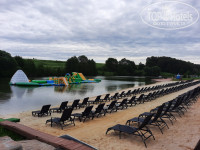 Огромная территория с песчаным пляжем и надувными большими горками. Велосипеды, квадратики к услугам.