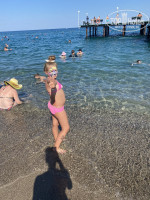 Пляж великолепный,лучший заход из всех где мы были в Кемере и Гейнюке,море чистое,да есть поросята на пляже,которые где попили и поели там и бросили все,но это не вина сотрудников,они,кстати,быстро все это убирают.