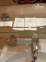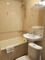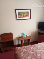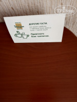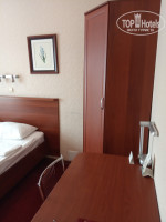 Номера дали каждому двухместные. Номер 409 мне очень понравился. Все чисто, стильно, культурно. Мебель приятная, не старая. В прихожей на вешалке табличка "Пожалуйста, не беспокоить" и "Пожалуйста, уберите номер". Там же одноразовые тапочки и рожок. В шкафу швейный набор и дополнительная подушка с одеялом. Рядом письменный стол, на столе лампа настольная и в папке информация отеля. На тумбочке телевизор ЖК стоит, каналов много. Внутри тумбочки мини-холодильник. Рядом с тумбочкой кофейный столик. На столике чашки с ложками (не пластиковые) и стаканы. На каждого лежат пакетики с чаем и сахар приветственная бутилированная вода (2 бутылки по 0,5л). Кровать очень удобная с ортопедическим матрасом, подушка для меня тоже удобная. В ванной хорошая сантехника, всё работало. Есть комплект полотенец на двоих и косметические принадлежности. Всё хорошего качества и белоснежного цвета.