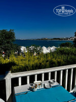 Завтраки и ужины - можно выйти на открытую веранду и кушать с видом на море, в обед веранда закрыта, возможно, из-за жары.