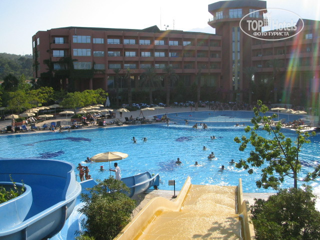 2) 2 больших бассейна - один в двумя хорошими горками, один с гидромассажем. У бассейна постоянно играет музыка, так что даже если вы не развлекаетесь "под предводительством" аниматоров, то всё равно не заскучаете)