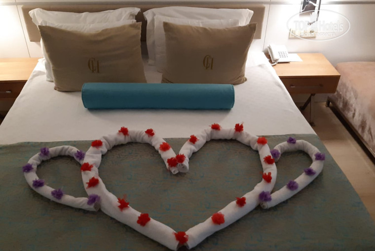 Нас заселили сразу в 8 утра, как приехали. Пришлось немного доплатить за ранее заселение, но это того стоило. Мы были с дороги, поэтому сразу хотелось умыться, отдохнуть и уже потом завтракать. Встретили нас приветливо и проводили сразу до номера. Номер был немного украшен, что тоже было приятно.