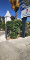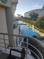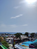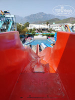 Территория через дорогу очень большая. Вначале есть мини речка, в которой можно и детям плыть по кругу. Водопад, фонтан. Имеются лежаки с "мальдивским" песком. Детские горки хорошие, возле них бассейн для взрослых. Вся территория выполнена в античном стиле с колоннами. Очень красиво. Рядом с солёной водой. И два бассейна с рыбками. Нужно с собой брать маску и наблюдать за обитателями. Мы попробовали плавать с маской в море. Точно такие рыбки плавают и там, но конечно в меньшем количестве. Есть аквапарк: 6 горок для взрослых и 3 экстремальные. Сделаны обычные горки очень странно, Если ехать правильно, то почти выкидывает, а если сесть, то тормозишь. Для экстремальных нужно подписывать доп согласие. Имеется сцена, где проходит вечерняя анимация. Есть детский мини клуб, где детям можно купить футболку или сумочку, которую они потом разукрасят, а вечером на анимации им её подарят. И рядом обычные сухие горки