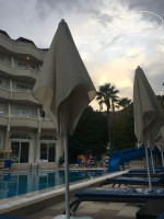 Из аэропорта Далламан ехать 2-2,5 часа, дорога очень живописная. Приехали в отель в 11 дня, на ресепшене сказали подождать до 2 часов, но одну женщину засели сразу($), в итоге номер был готов раньше и примерно в 13 уже заселилась. Номер в целом нормальный, белое чистое полотенце, два чистых белых полотенца (маленькое и большое). В ванной комнате нет полочек, крючков, душ- американского типа (лейка торчащая из стены),неудобная ступенька ( типо сидячая ванная) очень легко поскользнуться, вода выливается на пол. Было два мыла и два шампуня, мыльниц нет, стакана нет, посуды в номере нет, мусорное ведро только под туалетную бумагу и то очень маленькое. Мусор не куда девать пришлось в пакеты собирать. За 8 дней у меня 1 раз вынесли мусор, уборки не было СОВСЕМ, когда нервы уже сдали я просто выбросила мусор в коридор( и даже там его забрали не сразу). Одеяла в номере не было совсем, вместо него тоненькое вафельное полотенце (вообще ?). Познакомилась с русскими ребятами, спросила у них, один сказал что у него в шкафу есть покрывало, и после того как он залез в шкаф за ним его начали кусать ночью ( видно что дорожка укусов клопов), к слову это оказались шторы. Обратилась на ресепшн, плед мне принесли сразу, прямо в номер. Парень на ресепшене приветливый, быстро решал вопросы которые появлялись. Остальной персонал не здоровается, говоришь hello, в ответ тишина. Говорят на турецком и на английском. Когда на 7 день прибывание со мной поздоровались на баре, я очень сильно удивилась😄. В отеле много иностранцев, они очень громкие, к ним отношение лучше. Питание очень однообразное ( до этого дважды отдыхали в тройках в тунисе и по 15 дней но не уставала от еды). Если дали курицу, то это праздник, мяса нет СОВСЕМ, нагетсы, соевые колбаски, баклажаны, кабачки, картофель фри, много зелени, огурцы, помидоры, странные салаты из макарон в йогурте, вареные морковь и лук, иногда грибы, суп один( загущеный крахмалом бульон), тарелки для него быстро заканчивались. На завтрак нет яичницы, только маленькие панаейки, вареные яйца, сыр фета, оливки, хлопья, халва, соевая колбаса. Кофе бурда, чай бурда, на завтраке другого выбора напитков нет, тк бар только с 10. Пищевое расстройство гарантировано. По бару плюс что наливают в стекло, но чувствуется что посуды им не хватает, пиво хорошее, вино сухое белое красное хорошее, все остальное ни о чем (я не пью, но ребята брали в соотношении 10 проц сок, 90 водка), раки нет. Вкусный вишневый сок. Когда отель продают и позиционируют его как отель с собственным пляжем, по факту это обман. Пляж в 10 минутах ходьбы, две линии сбоку, на первой линии все для иностранцев занято. Со своими напитками и едой нельзя, нужно покупать у них в баре, цены там кусаются. Приходились пить и прятать, ну такое( по мне это напряжно). Дно илистое, до глубины далеко. В правой части есть пляжи общественные, там глубже и вода чистая)).