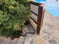 4. После оформлений, в жару, на гольфмобиле носильщика, поехали забирать вещи из машины, и прямиком оттуда в "наш" номер. Номер показался не совсем тот что мы заказывали или совсем не тот, 28м2 вместо 35м2. С выходом на лужайку , с общим бассейном и загорающими телами далеко не модельной внешности, и мелькающие напротив нашей панорамной балконной двери и кровати, вместо большого бунгало с видом на море. После первого и последнего открытия балконной двери и вдыхании смога из трубы, в 10 метрах от двери комнаты в кустах, от ресторана , который находится под бассеином, уже стало понятно что это не то.После коротких выяснений (советую при заказе в этой гостинице (у них все номера бунгало с видом на море) и вообще, в других отелях, сохранять скрины с сайта, вашего номера который указан в вашем заказе) нам было сказано что это лучше номер чем мы заказывали, но у них есть ещё один номер, последний,который мы можем посмотреть. Приехал мл.менеджер на гольфмобиле и привёз нас в номер который мы заказывали, мы были счасливы и благодарны ему в рзмере 20 евро. И того, что бы вселиться в номер мы дали 10 евро чаевых носильщику, который вёз нас с парковки в номер и 20 мл.менеджеру за его помощь в решении проблемы.По роду своей занятости в жизни, возникает ощущение ,что их комбинация работает и вода на ресепшен это было только начало. Если персонал не дополучает от жадины хозяина, он(персонал) будет строить свой сервис на чаевых. Но это всего лишь мои подозрения,но никак не утверждения. Не жалею чаевых, люблю благодарить людей, но предпочитаю это делать в пассивной форме без обязательств.