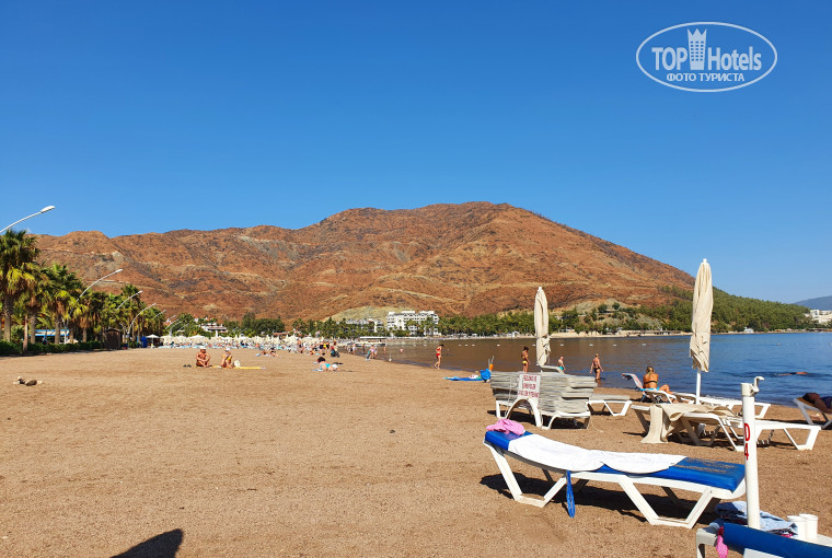 Пляж отельный есть, находится напротив кафе Ибица, совмещен с пляжем ещё какого-то отеля. Пили на нем без проблем воду, ели фрукты, принесенные с собой. Пользовался вайфаем кафе.