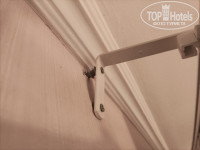 Балконная дверь одна без окна, на проветривание не открывается. Карниз висит, того и гляди упадет на голову.