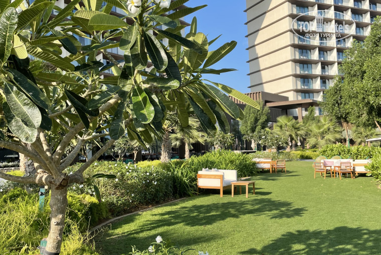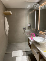 Небольшой, но с прекрасным видом. Все в отличном состоянии, никаких поломок/ протечек не было. Кондиционер охлаждает быстро, но при этом сильно не дует. Единственная сложность - в номере нет евророзеток. Телефон заряжали через usb (также в номере есть беспроводная зарядка). Но я не смогла воспользоваться выпрямителем для волос (на ресепшен переходники не предоставляют); можно было купить в магазине на территории отеля, я решила, что нет острой потребности.