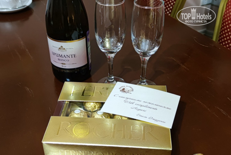 По приезду в номере нас ждал комплимент в честь нового года - в виде шампанского и конфет. Отдельное спасибо!