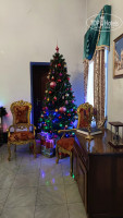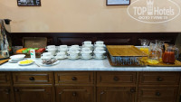 На втором этаже ресторан. Очень уютный. С елочкой, камином, который девочки разжигали каждое утро на завтрак. На стенах фотографии владельца и его именитых гостей, благодарственные письма.