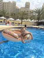 Территория отеля не большая, но красивая и очень ухоженная, тут молодцы! Но само здание состоит из двух отелей : Al hamra resident и Astoria, которые огорожены забором! Детский клуб маленькое здание, рядом ничего, детской площадки нет, на пляже какая то развалившаяся, раз в неделю батут надули. Горок нет.
