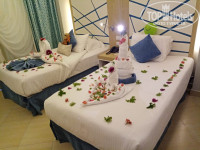 Номер очень хороший, лучше чем во многих других отелях Хургады. Мы попросили номер после ренновации, и получили без доплат, хотя пришлось, конечно подождать несколько часов, пока его убирают. Но ничего страшного: нам надели браслеты, дали карточки на полотенца, проводили на обед и по пути рассказали всю информацию что где находиться, когда и как работает. После обеда пошли на пляж, позагорали, покупались и вернулись уже попозже, когда можно было заселятьсы в долгожданный номер.