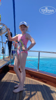Пегаса на кораблик пиратский, белый пляж шикарный, плюс в том что к этому пляжу везут на лодочке, у всех остальных продавцов этих Туров плывут до него сами, с детьми конечно не вариант) на кораблике тоже вкусная еда и креветки 🦐, фруктовое блюдо стоило 20$! Но в конце они дают миску фруктового салата!