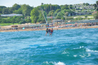 Летали на парашюте втроём на пляже. Понравилось, но очень долго всё было) Пришлось прятаться от полицейского катера и ждать, когда они уедут.