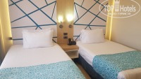 В номерах все аккуратненько, чистенько. Уборка, пополнение запасов воды и напитков - ежедневно. Сложно сказать какое было заполнение отеля, вроде у нас даже были соседи через стену, но мы ни разу не слышали постороннего шума. И на нас никто не жаловался, хотя дети у нас шумные и могут устраивать сражения заполночь. Полотенца для бассейна выдают отдельно, из номера таскать не надо, тоже плюс. В отеле есть свой медицинский кабинет, массаж, тренажерный зал, правда мы ничем этим так и не воспользовались. А так же есть целый торговый ряд с различными магазинами от продуктового до спортивной одежды. Кое-что мы там прикупили, из того, что забыли взять на отдых.