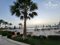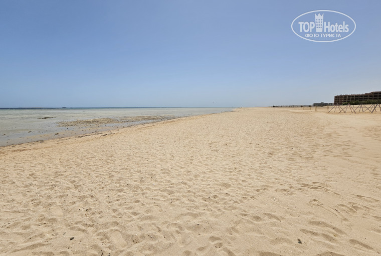 Большая береговая линия с песчаным пляжем, баром, туалетами, душем. Есть набережная. Вечером гуляли по променаду.
