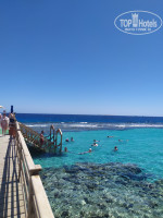 Заход в море для взрослых только с пирса, купаться можно в лагуне, в открытое море не пускают. У берега очень мелко, удобно для детей.