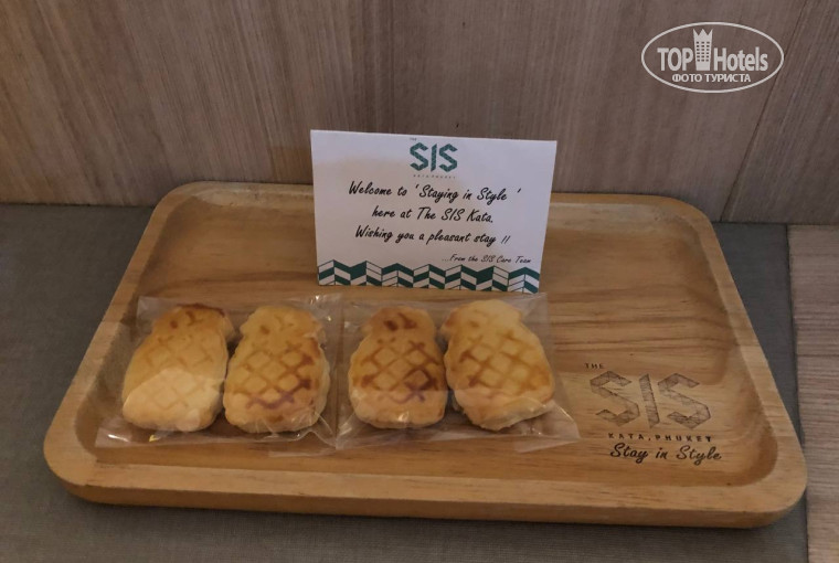 В номере на заселение лежат приветственные печеньки в виде апельсинов (нам на вкус не понравились). Также есть шлепки за 120бат.
