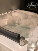 НОМЕР "Garden view with jacuzzi": около 38 кв.м., двуспальная кровать king-size очень широкая, джакузи на балконе (очень слабый гидромассаж, пользовались 1 раз), небольшой диванчик с журнальным столиком, душ, одна раковина, отдельный с/у, сейф, тапочки две пары бесплатные, халаты, полотенца для пляжа в пляжной сумке и полотенца в номере, капсульная кофемашина, чай, сахар и т.п. (бесплатные), посуда, чайник, 2 бутылки воды каждый день (бутылки не выкидывать! их по новой наполняют и закрывают), ТВ, wi-fi, колонка JBL, телефон, фен, кондиционер, мини холодильник, два зонта, гель для душа/шампунь/кондиционер/лосьон в бутылях с дозатором, на балконе есть столик со стульями и место для сушки вещей👍🏻 Никаких ватных палочек или зубных наборов не было, на ресепшн предложили купить за деньги...это очень смутило для отеля 4* (в отеле 2* на Карон все было до мелочей)!