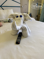 4) Номера очень приличные, главное чисто. Уборка каждый день, замечаний нет. У нас был прекрасный номер с большим балконом, каждый вечер, возвращаясь в номер, горничный (они либо все мужчины, либо мы женщин не видели) оставлял нам фигурки из полотенец: ребенок был в восторге.