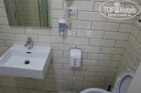 Санузел вполне просторный, с раковиной, унитазом и душевой кабиной. Сантехника новая, как и вообще все в номере. Есть фен, набор полотенец, шампуни в тюбиках и мыло.