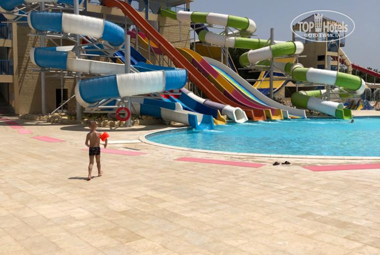Хороший отель, особенно для тех кто любит покататься на горках, тут их немного, но зато на любой вкус и возраст, как для детей, так и более экстремальные для взрослых. У нас был номер супериор с двумя большими кроватями. Мебель новая, оформление номеров современное, стильное, наполнение отличное: в холодильнике соки, вода, спрайт, кола, чайник, чай, кофе сахар, сливки, косметика для душа, сейф и т.д. Территория отеля чистая и очень ухоженная, постоянно следят за растительностью, моют кафель на всей территории отеля постоянно и каждый день. Ассортимент еды относительно не очень большой, все вкусно, постоянные мясные блюда, рыба нескольких видов, овощи, фрукты, сладости. Пончики и вафли на пляже с джемом, шоколадом и мороженым просто восхитительные))) Шаурма, пицца, картошка фри в аквабаре вкуснятина. Набрать вес можно запросто). Для тех кто следит за питанием, много вариантов отварных блюд и на пару. Уборку в номере проводят регулярно, мы пару раз отказывались, так как нет необходимости. В отеле прекрасная анимационная команда, подружились с нашими девочками из России. Целый день нас развлекали, и детский клуб тоже хороший, рисуют, играют, лица раскрашивают, сыну очень понравилось, было весело и нескучно всем.