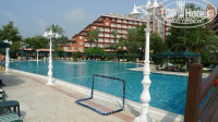 4 бассейна. Кормили очень хорошо. Мясо, рыба, креветки. Набрал 5 кг. Очередей не было.